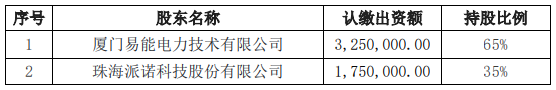 日前,派诺科技(920375)发布公告,根据经营发展需要,拟将公司持有的熠电(上海)电气科技有限公司(以下简称“上海熠电”)35%的股权合计以35万元人民币的对价转让给厦门易能电力技术有限公司(简称“易能电力”)。